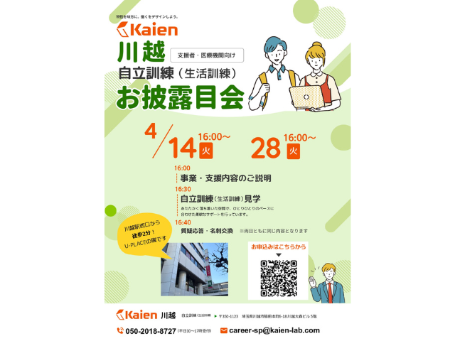 このたび、2026年4月1日に、自立訓練(生活訓練)事業所「Kaien川越」が開所する運びとなりました。