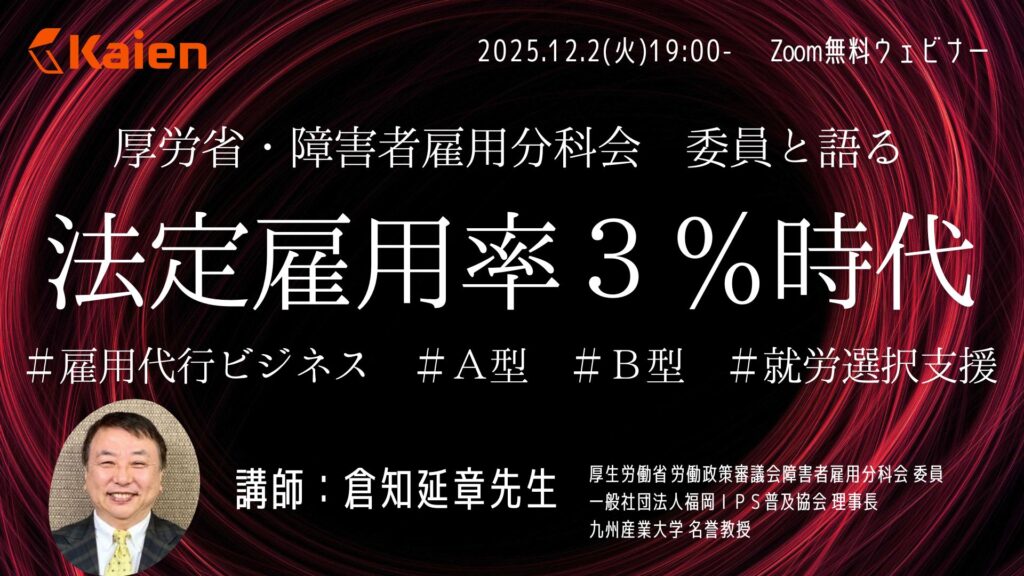 ■ 12/2(火) 19:00 厚労省・障害者雇用分科会 委員と語る 「法定雇用率3%時代」#雇用代行ビジネス #A型 #B型 #就労選択支援