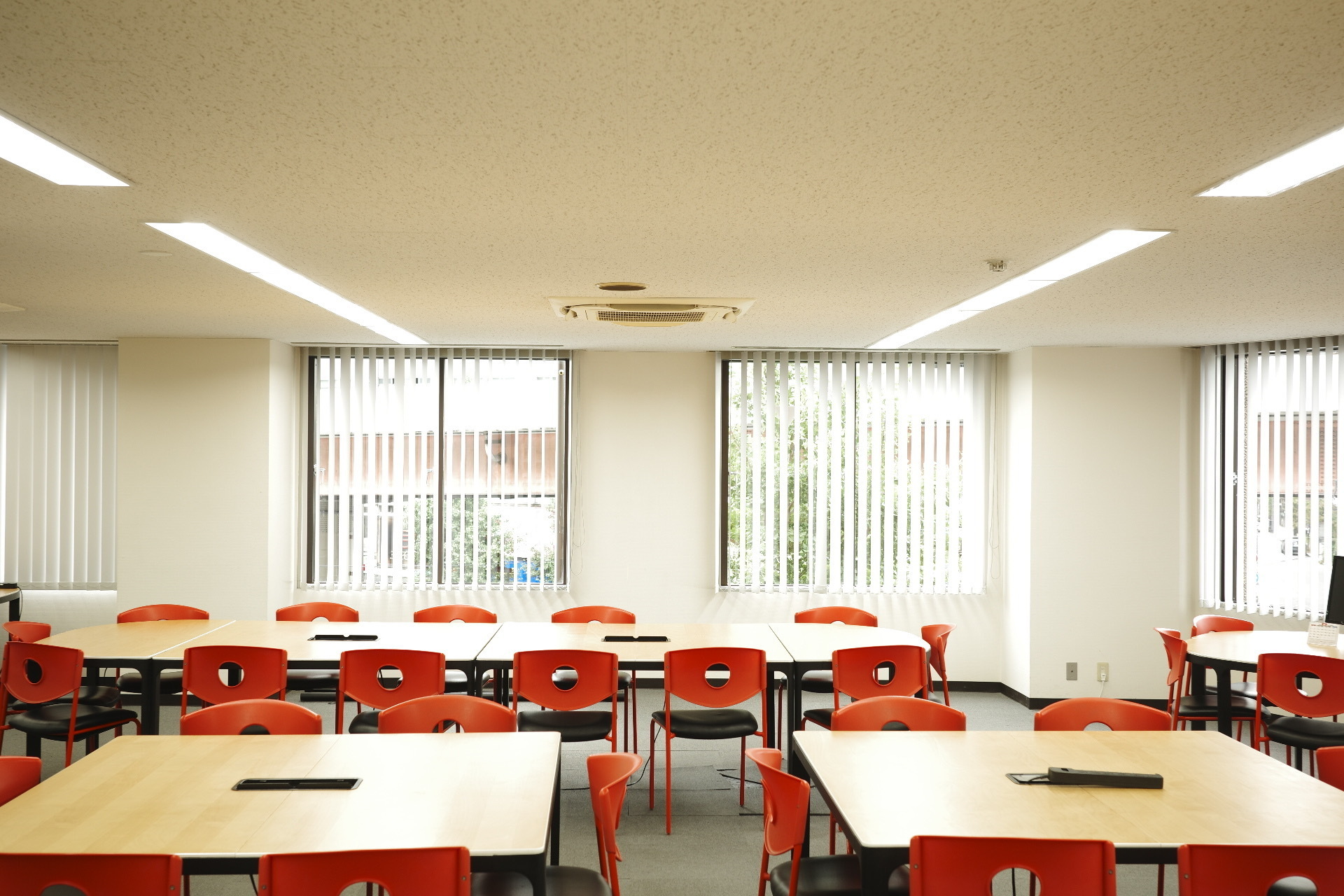 訓練する場所とは別に、窓に面した休憩できるスペースがあり、秋葉原の街を一望できます。お昼ご飯などをこちらで召し上がれます。