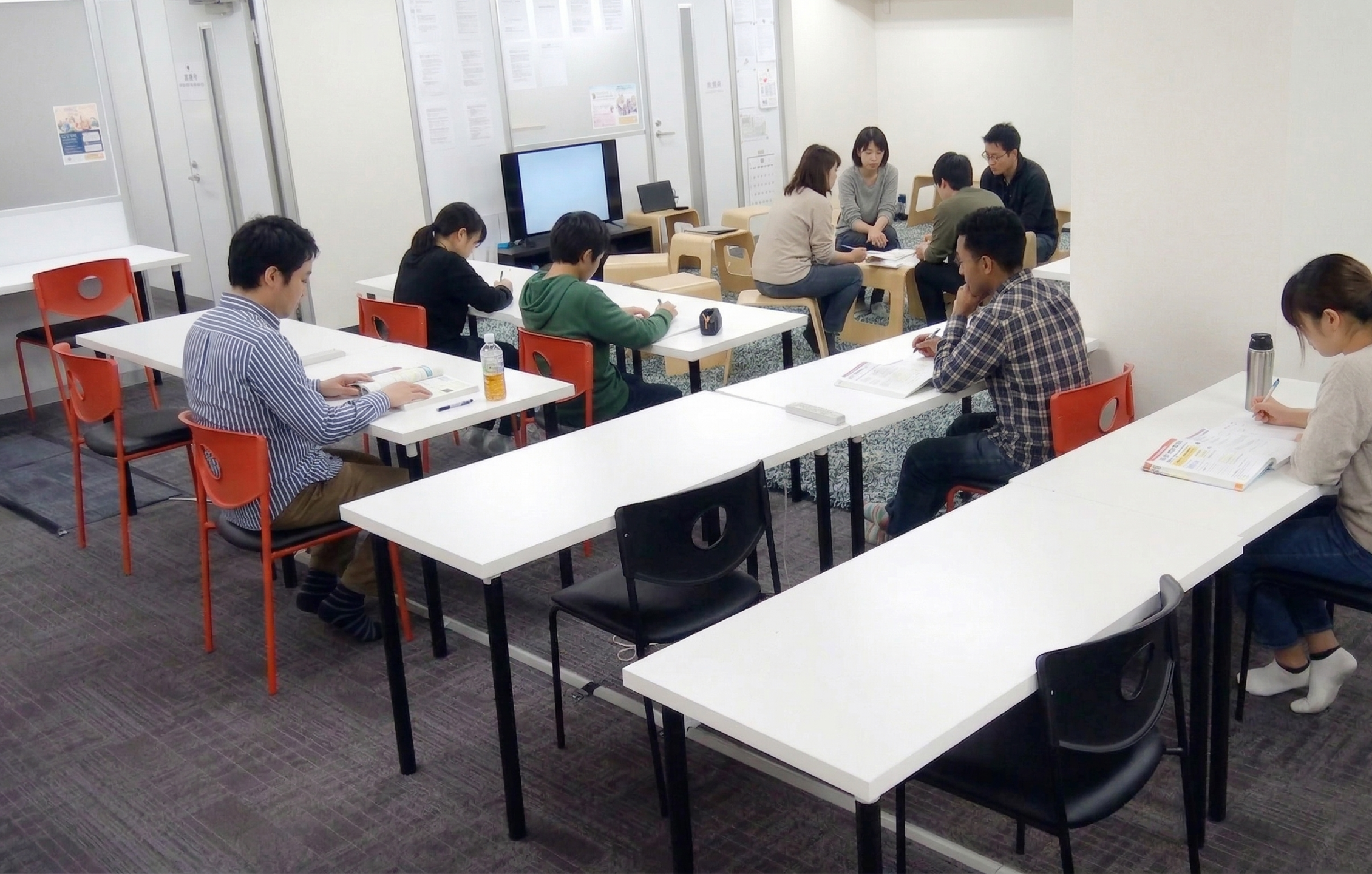 これから社会に出るために必要な知識やノウハウを知るための講座、ご自身のテーマに取り組む実践プロジェクトを実施しています。室内はテーブル席だけでなく、ラグマットに座ることもできるアットホームな空間です。ゆったりした環境であなたのペースでセッションに参加することができます。グループで意見交換をする際は、聞くだけ参加もOKです。
